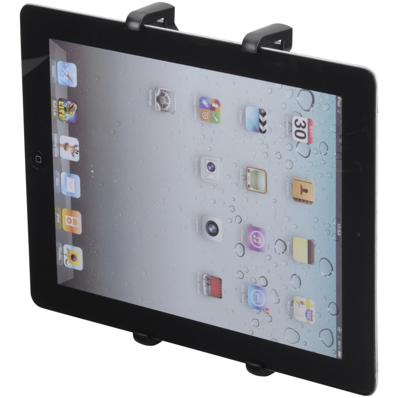 Universaler Tablet Halter (Displaygröße bis 13", z.B. iPad Pro 12,9") zur einfachen Befestigung an den Kopfstützenstreben von Fahrzeugen. Optimal für Kinder, die auf langen Reisen und Autofahrten Filme auf der Rückbank schauen wollen.
